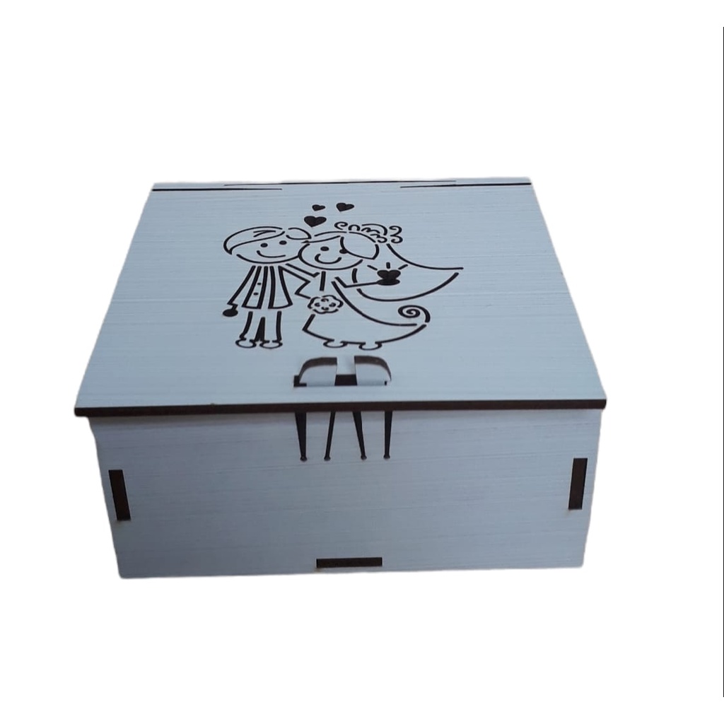Caixa Noivos, Lembrancinha, Casamento decoração Pintado de branco MDF 10x10x5 cm