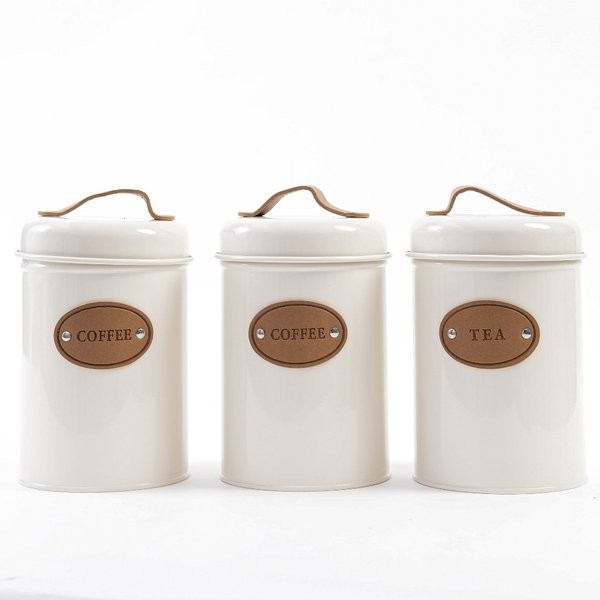 Kit 3 Latas de Metal e Alça e Tag de Couro Porta Mantimentos Com Tampa Hérnetica - Bege