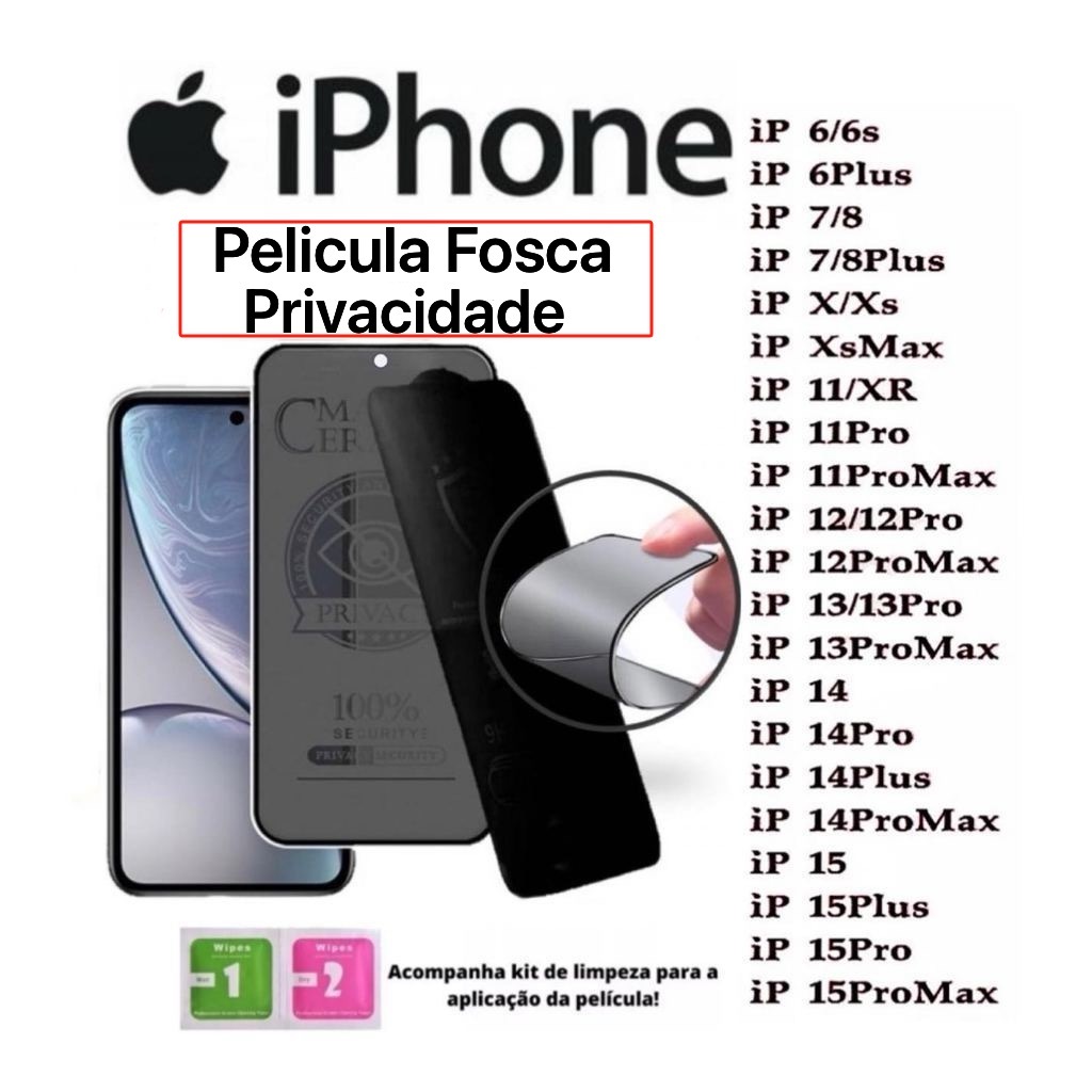 Kit De Película Cerâmica Fosca Privativa para iPhone IOS /XS/XR/11/12/13/13Pro/14/15/15PRO/15PROMAX