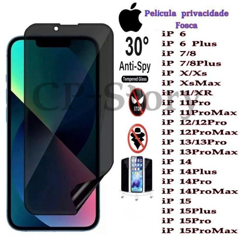 KIT Com 2 Película de vidro 3D Privativa Anti Spy Para IPhone Todos Modelos Privacidade Para Ios 7 8 XS XR 11 12 13 14 Pro Max
