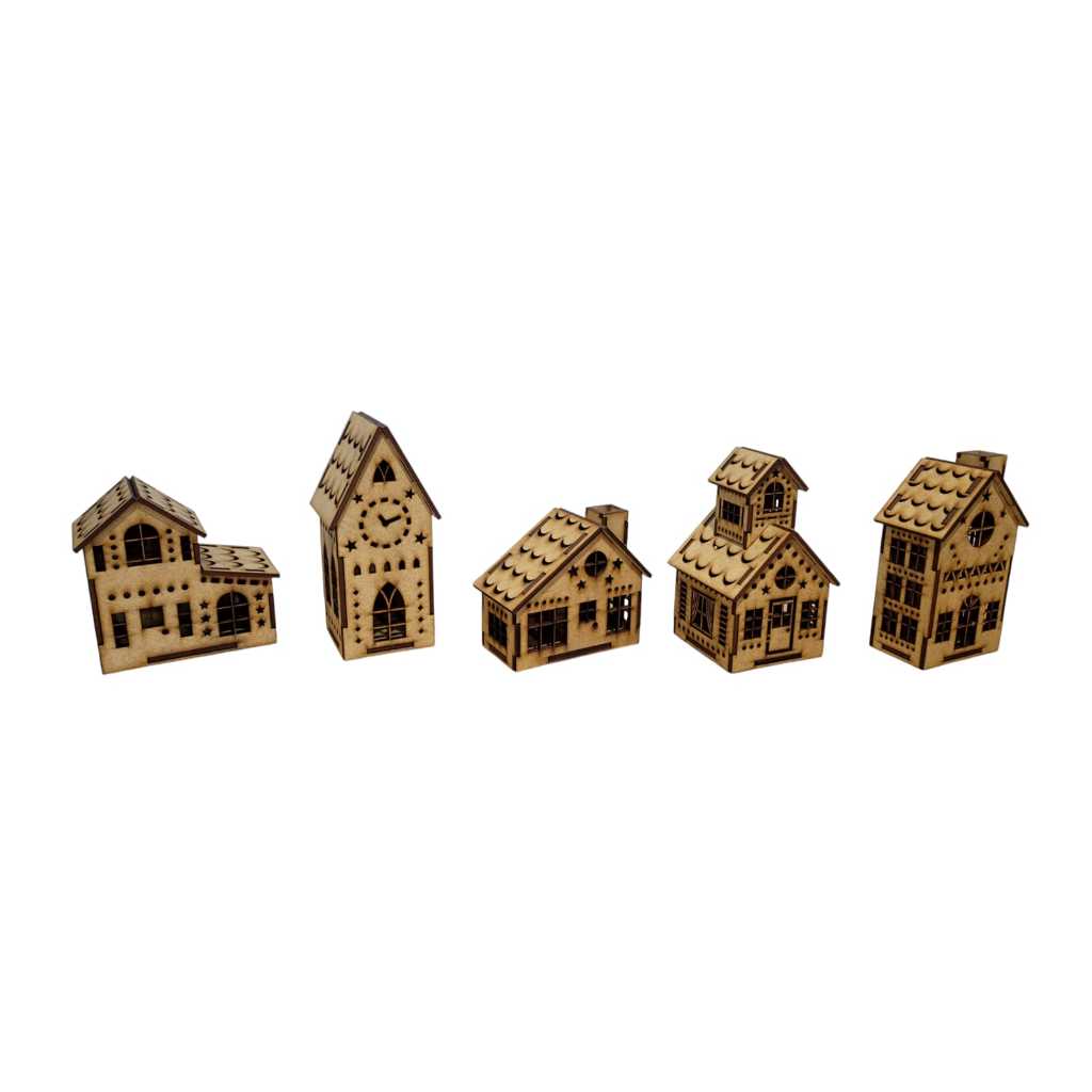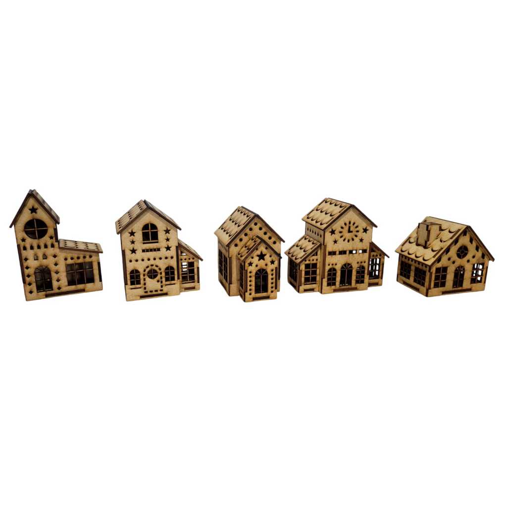 Vila Natalina Kit com 5 Casinhas em MDF Medias de 9 a 15 cm de Altura MONTADAS 01