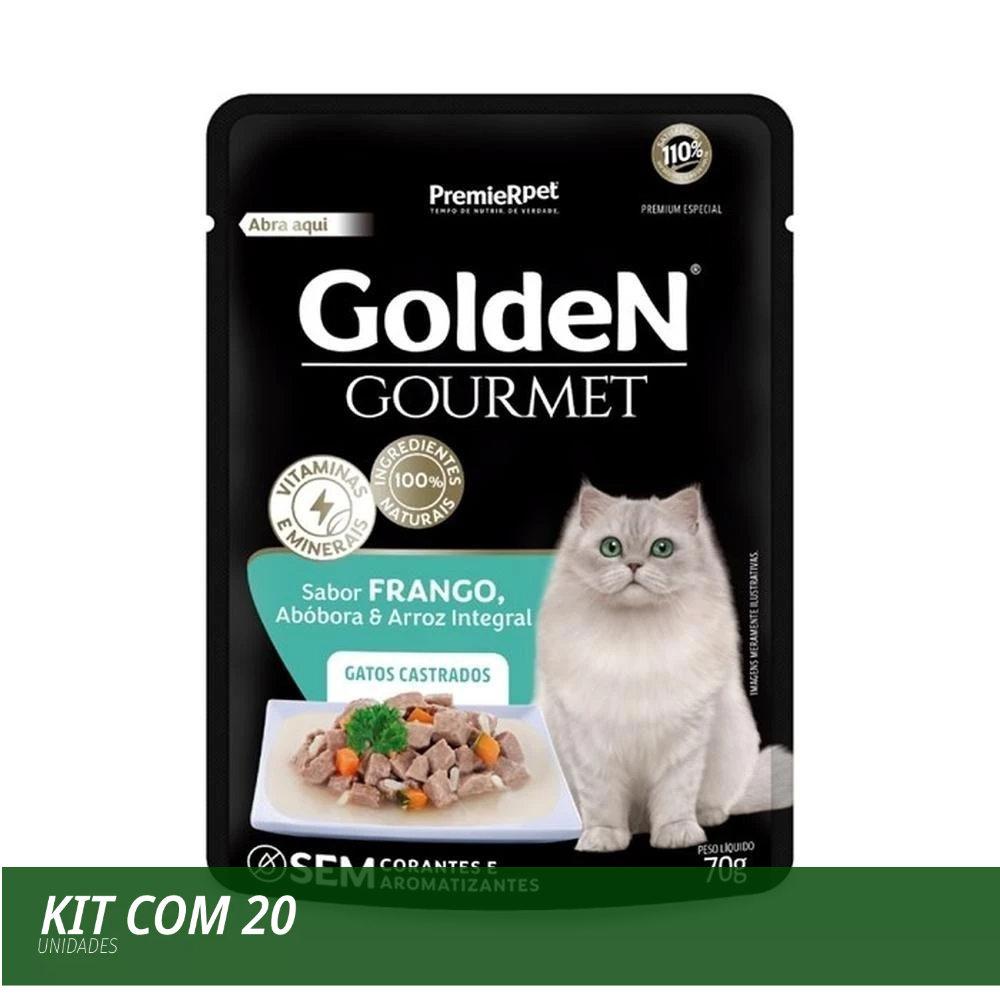 Kit 20 Golden Sachê Gourmet Gatos Adultos Castrados Sabor Frango e Abóbora 70g