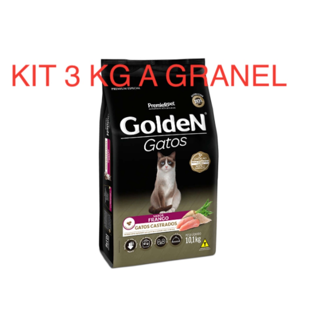 Ração A Granel Kit 3 Kg Golden Gatos Adultos Castrados Frango