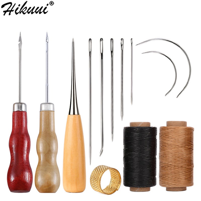 Conjunto De Costura Em Couro Kit De Reparo Feito À Mão Com Agulhas Cera De Coruja Thimble for Leather DIY Total 13 Pcs