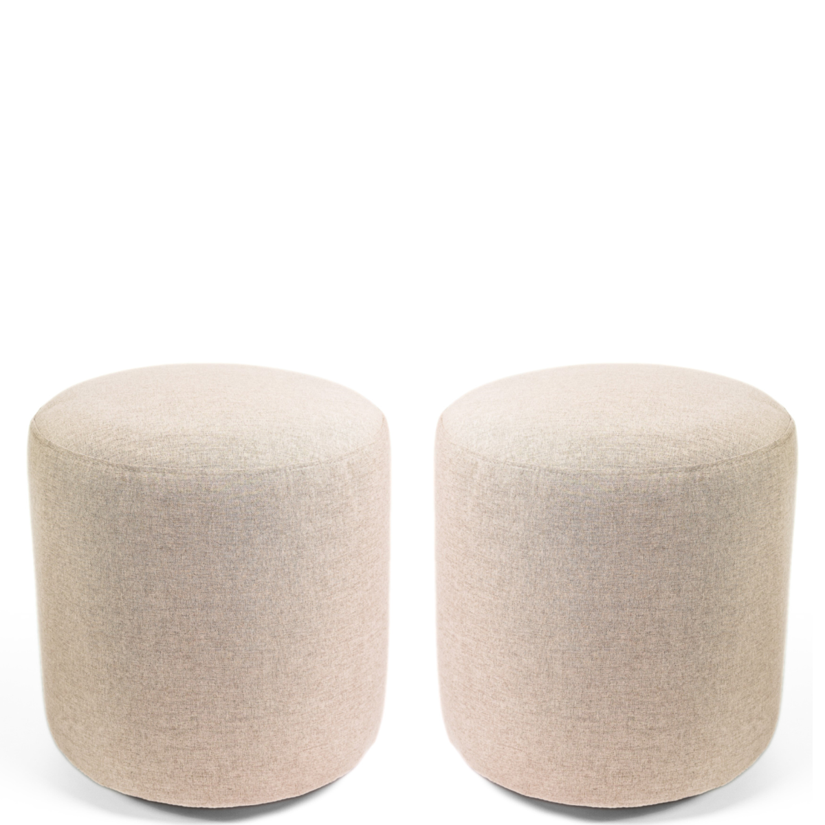 Kit 2 Puff Linna Redondo Decorativo Sala Quarto Tecido em Linho Pés Madeira Maciça