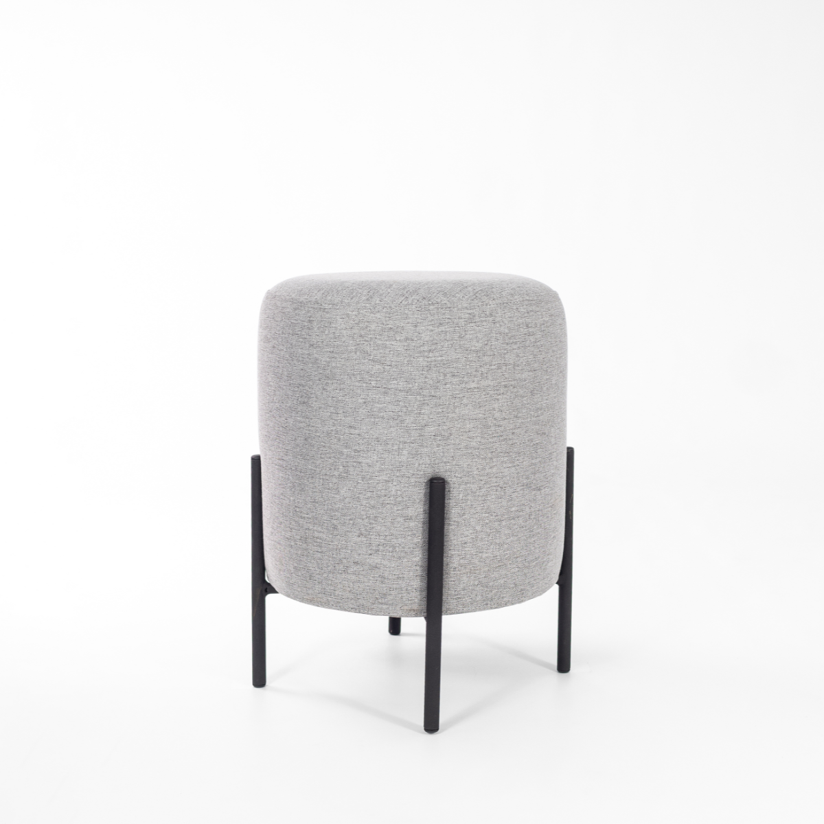 Puff banqueta redondo prata minimalista moderno tecido em linho decorativo sala pés de madeira