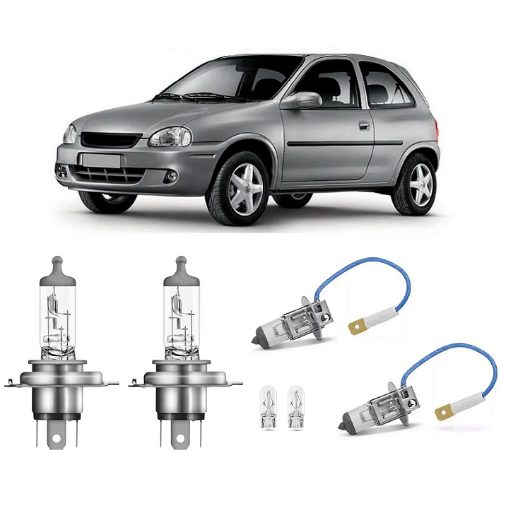 Kit 4 Lampada Farol e Milha Corsa Wind 1996 1997 1998 1999 2000 H4 H3