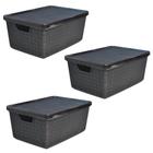 Kit 3 Caixas Organizadoras Jutta Preta Com Tampa 16 Litros Arqplast