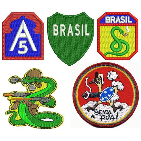 KIT 5 PATCHS BORDADOS FEB Oficial 2ª GUERRA MUNDIAL com CARRAPICHO ou sem CARRAPICHO para ser costurado e também termocolante.