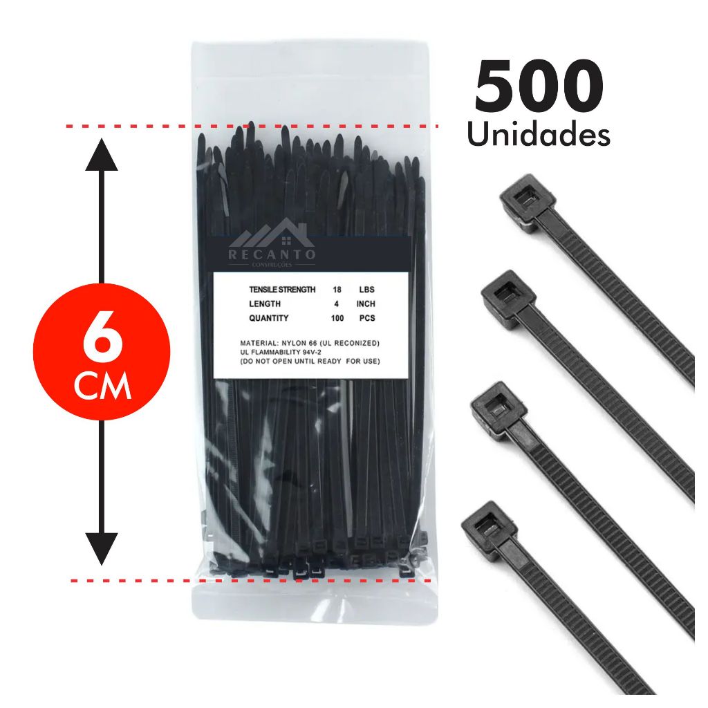 Kit 500 Abraçadeira de Nylon Enforca Gato Braçadeira Cintas Plásticas 6 cm - Preta - Fertak