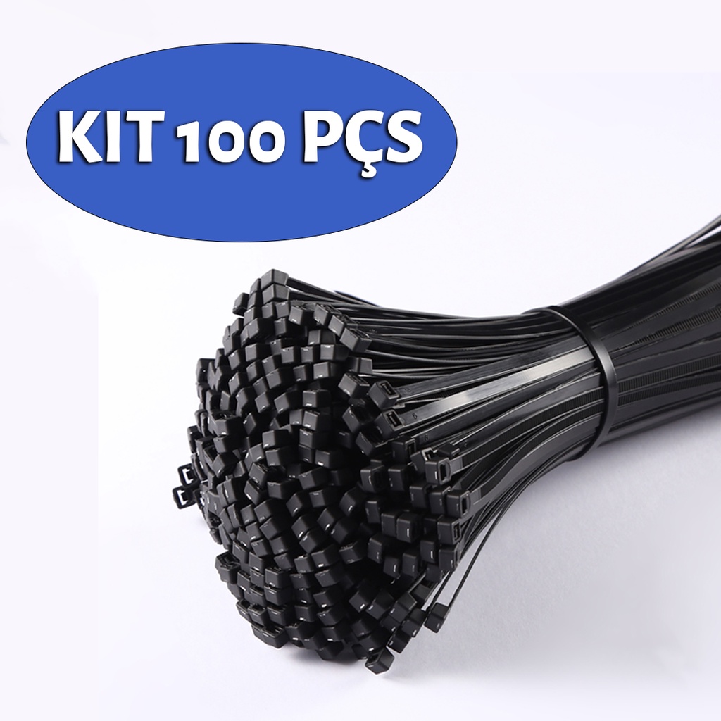 Kit 100 Cintas Plásticas Abraçadeira Nylon Enforca Gato Preta e Branca