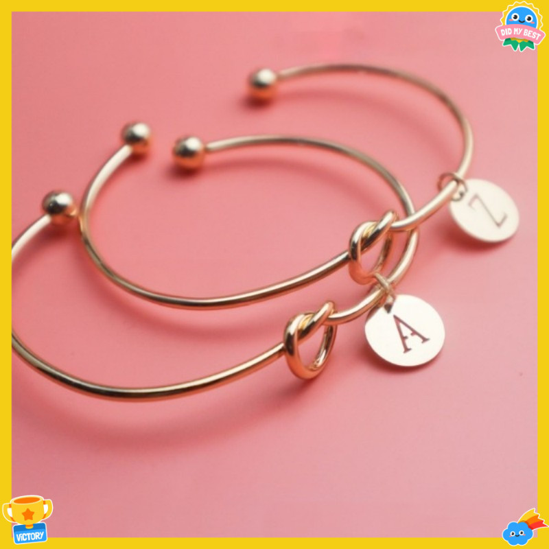 Pulseira feminina de Metal simples dourada/prateada com 26 letras/nome personalizado decoração manual