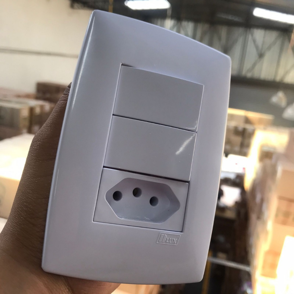 Monte Seu Kit de Tomadas e Interruptores Brancos Blux Home Conjuntos Completos espelhos módulos placas suportes, Tomada Dupla tripla 10A 20A Paralelo intermediário bipolar bivolt vermelha.