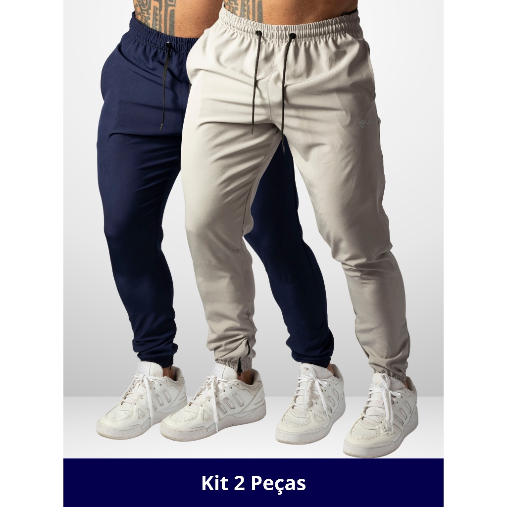 KIT 2 Calça Jogger Tactel com Elastano para Treino Esportiva Masculina Ziper No Punho