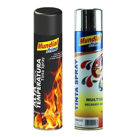 Kit Tinta Spray Alta Temperatura Preto Fosc Cromado Metálico