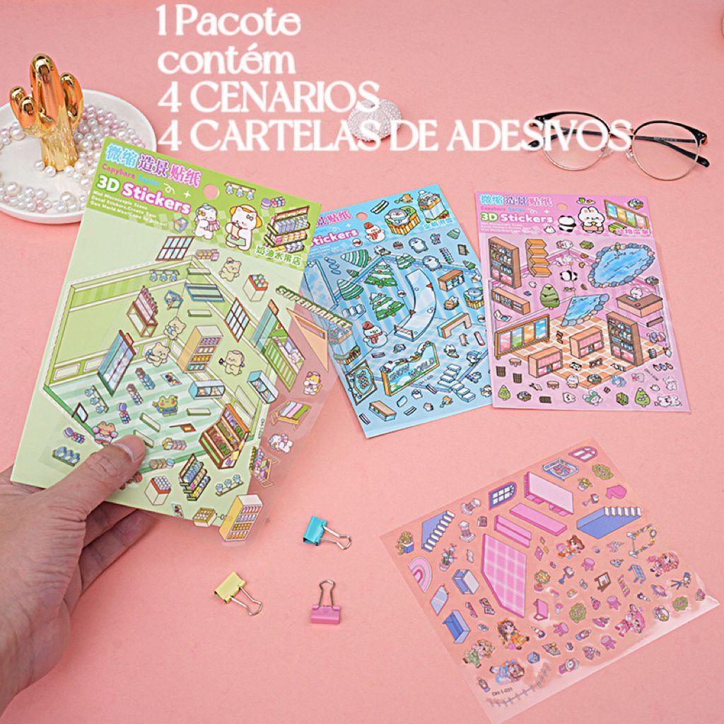 Kit Adesivos 3d Miniatura Cenário Paisagismo Mais Contém 4 CENARIOS E 4 CARTELAS DE ADESIVOS