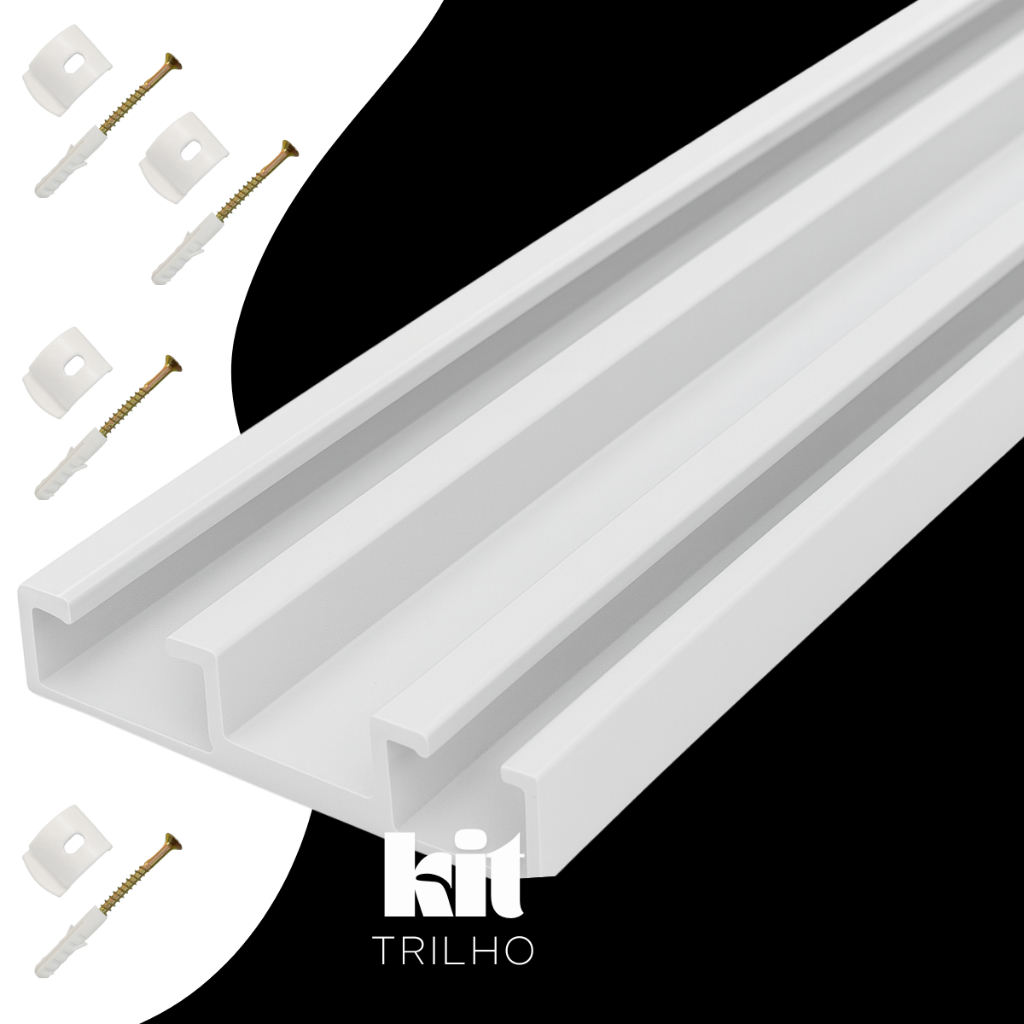 Kit Completo Trilho Suiço Simples Max Para Teto 3,0m Branco Deslizante Parafuso Bucha