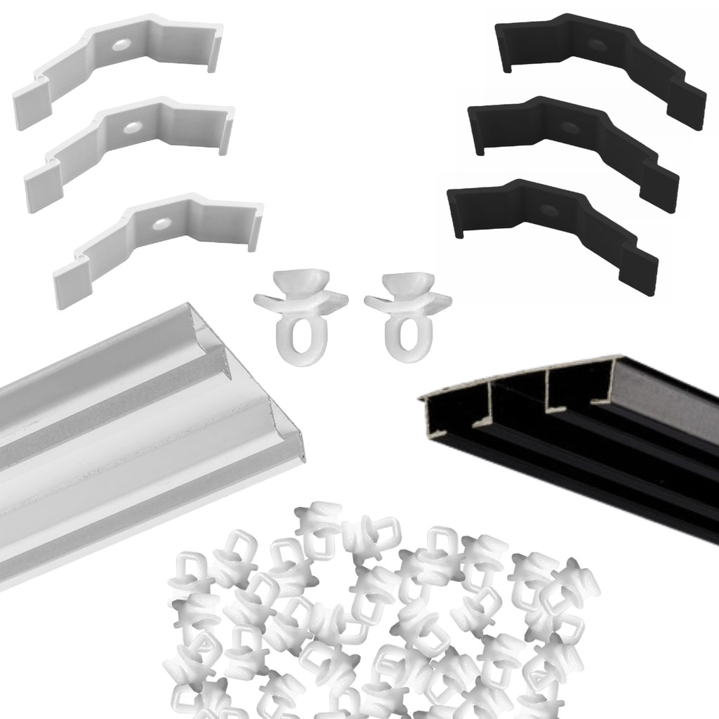 Kit Trilho Suíço Simples Max/Maxxi 2/3/4/5/6/7/8/9/10m para Cortinas Pesadas Branco/Preto
