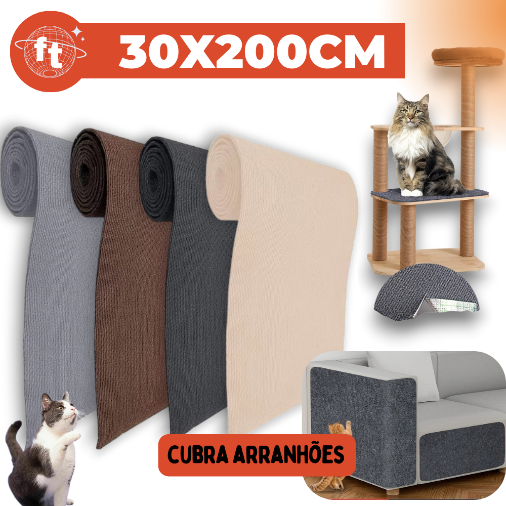 Tapete Arranhador Carpete Grande Auto Adesivo Para Gato - Protetor Sofá Cama Box E Interativo Gatos