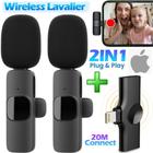 Microfone Lapela Duplo Sem Fio para iPhone Gravação Profissional Vlog Vídeos Anti Ruído