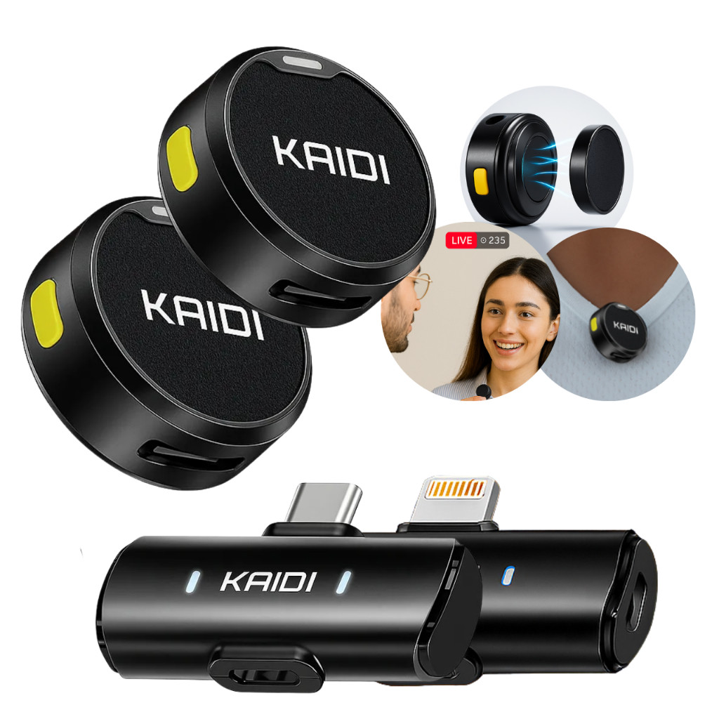 Microfone Profissional Sem Fio Lapela Duplo Redondo Anti Ruído Magnetico Para Celular iPhone Android