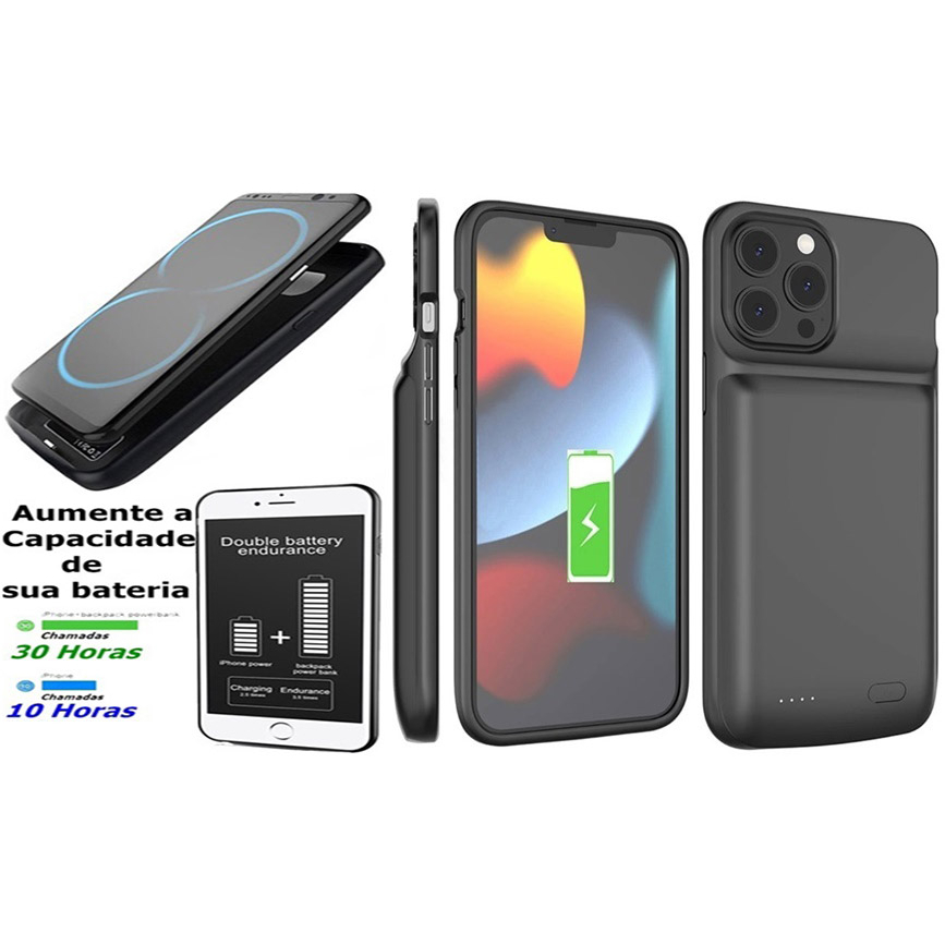 Capa Case Capinha Carregadora Iphone 14 13 12 11 Pro Max Xs X XR 5 5s 6 6s 7 8 Plus SE 2020 2022 Bateria Com Carga Extra Recarregável 5.000 Mah