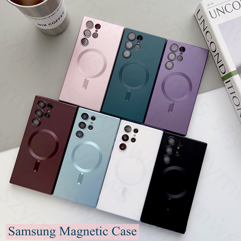 Proteção Da Lente De Vidro Magnética Sem Fio De Luxo Para Telefone Samsung Galaxy S23 S22 S21 S20 Ultra Plus TPU Capa Macia À Prova De Choque