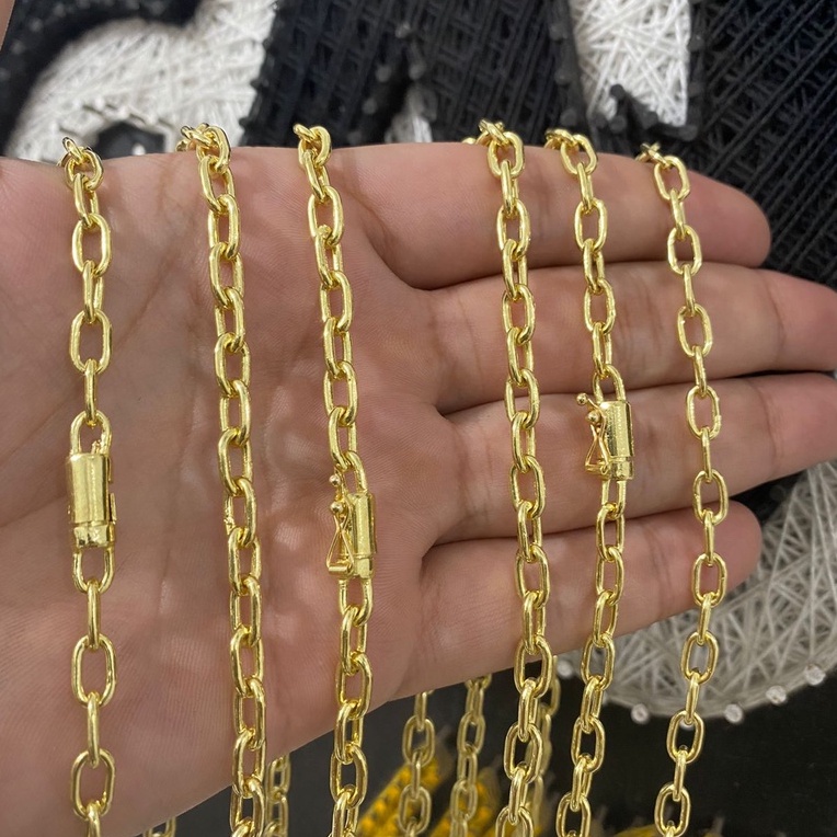 Cordão Corrente Colar Cadeado de quina 5mm 100% Moeda Antiga Dourada