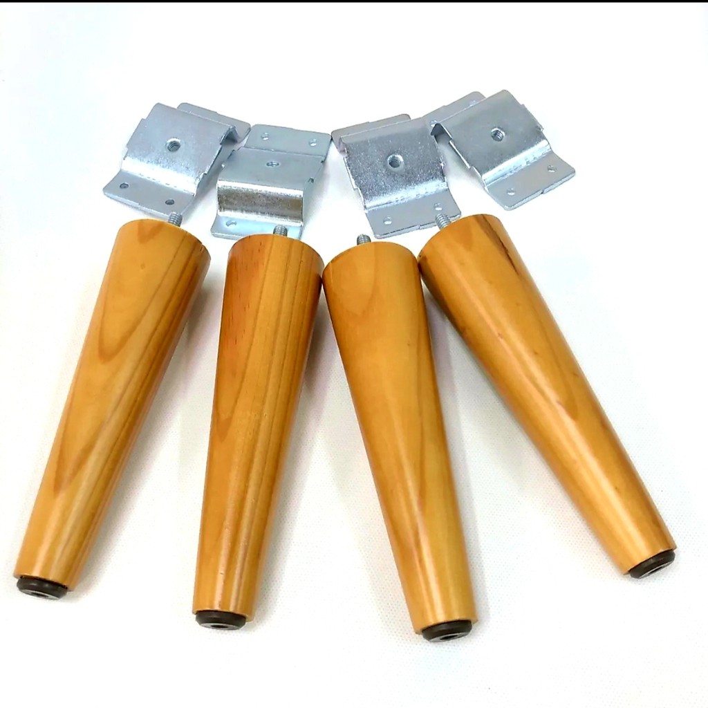 Kit Conjunto 4 Pés Palito Retro Cônico 30cm Madeira Móveis Com Kit Instalação Chapinha e Parafusos