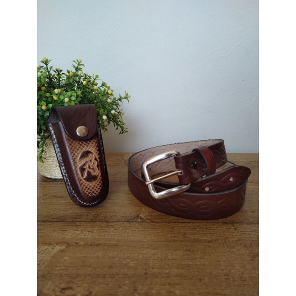 Kit Adulto Cinto De Couro Legítimo + Bainha Country C/ Canivete