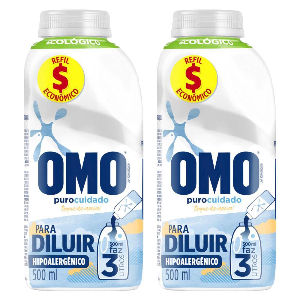 Kit com 2 Refil Sabão Líquido Omo Puro Cuidado Para Diluir 500ml