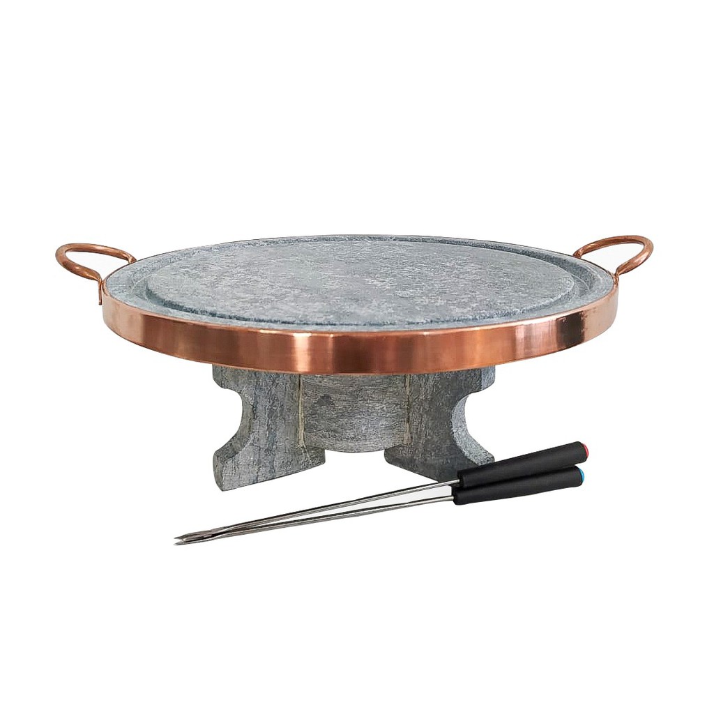 Kit Fondue Natural Chapa De Pedra Sabão Para Carne 37 Cm + 2 Garfinhos