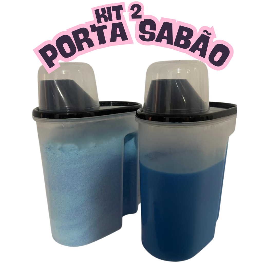 Kit 2 Porta Sabão em Pó Liquido e Amaciante 1700ml com Copo de Medida Capacidade para 1kg de Sabão