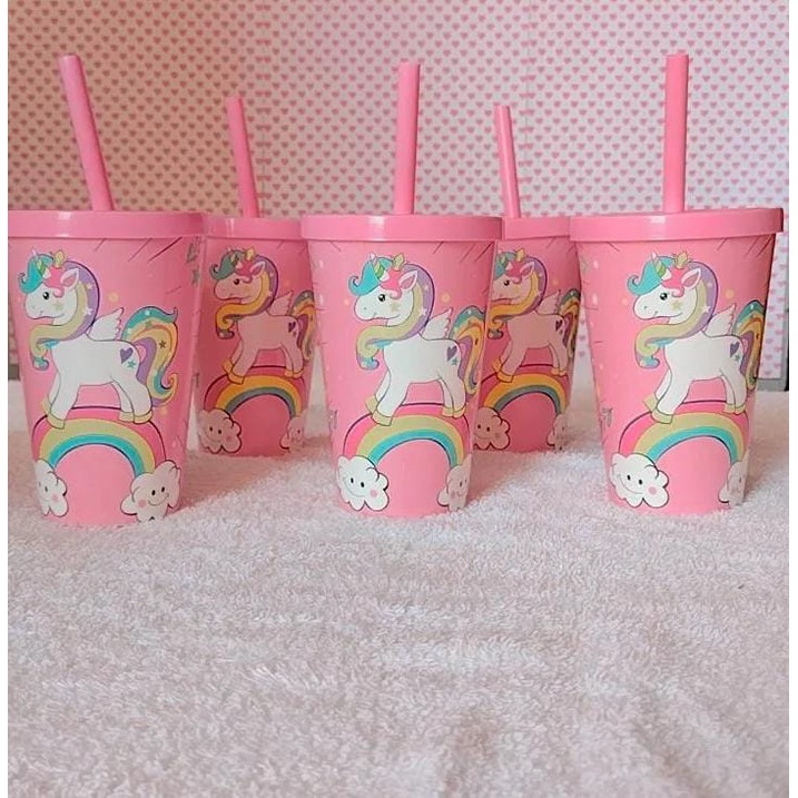 Copo com Canudo Unicórnio Baby Shark Tubarãozinho Dia das Crianças Infantil