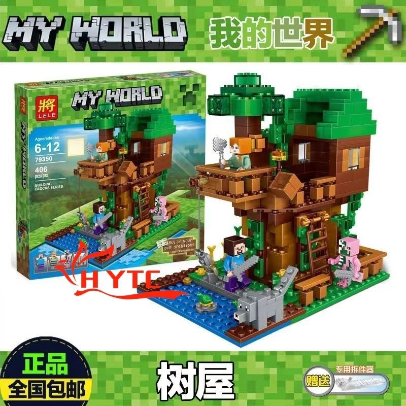 300 Peças Minecraft Steve Series Jungle Tree Home House Kids Blocos De Construção Montados