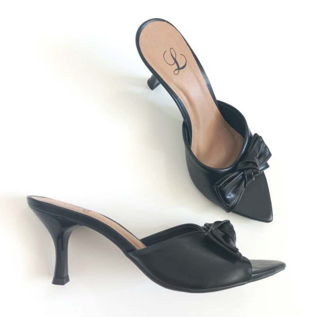 Tamanco Feminino Bico Folha Laco Preto Moda Sandalia Mulher Salto Fino