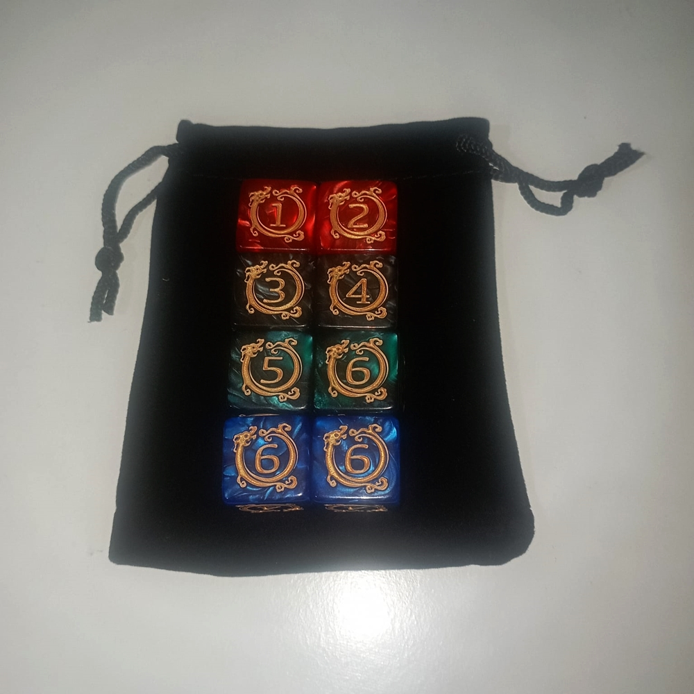 Conjunto 8 dados D6 Dragão para Jogos de Tabuleiro RPG + Bolsa + Poção / Board Game D&D
