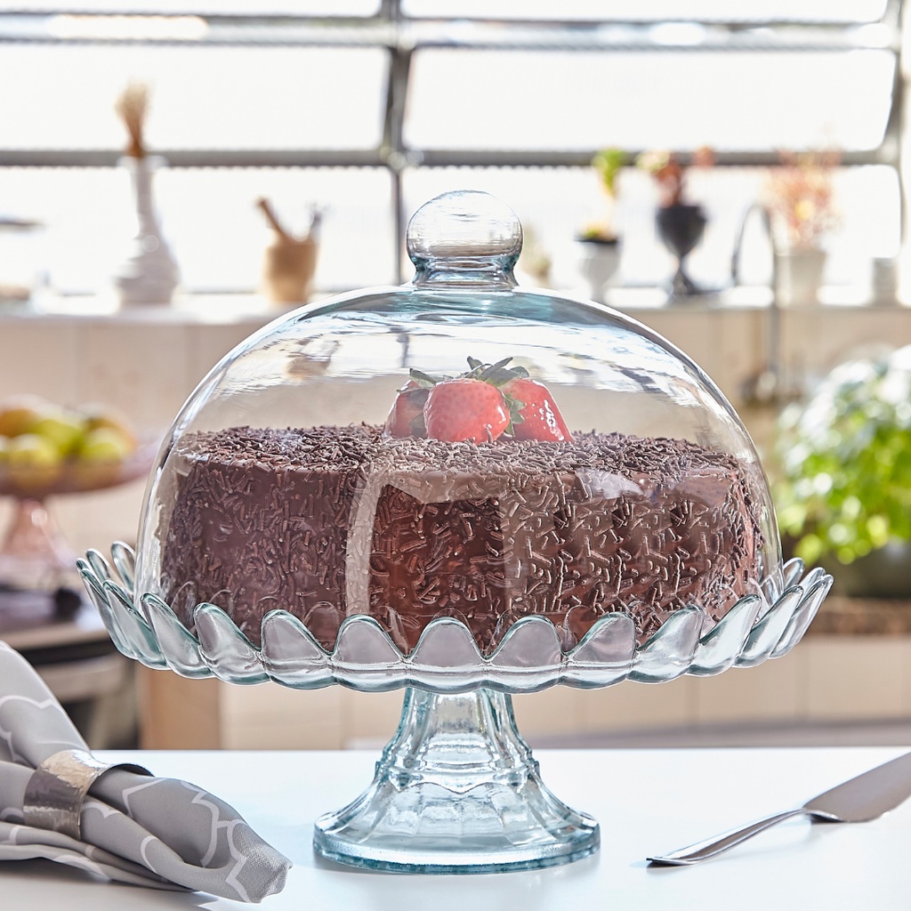Boleira de Vidro com Tampa Pétalas de Jasmin 24cm Vitazza Prato para Bolo, Doce, Sobremesa, Decoração, Organização e Mesa Posta Elegante e Sustentável