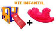 Combo 1 Gangorra Infantil cavalinho rosa que sunporta té 40 kg + 1 Escorregador Playjunior casinha - Valentina brinquedo