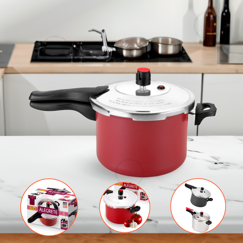 Panela De Pressão Antiaderente Premium Cozinha Feijao Carne Com Menor Tempo de Cozimento Fechamento Externo com 1 Valvula de Segurança e 2 Cabos para Segurar - 4,5 Litros - Alegrete