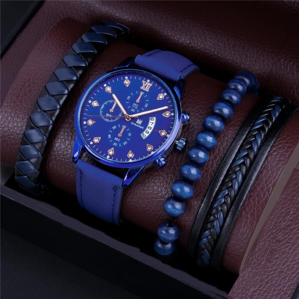 Homens Cinto de Moda Casual Relógio de Quartzo +3 Pulseiras