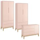 Cômoda com Porta e 2 Peças Guarda Roupa Infantil New Classic Rosa com Pés Madeira Natural - Reller