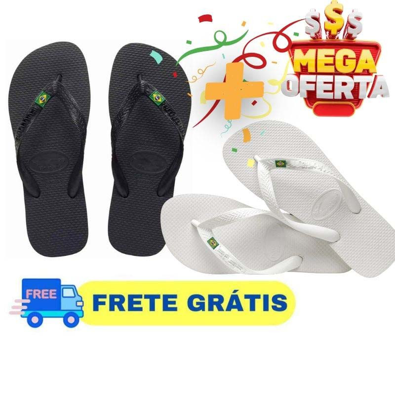 Kit 2 Pares De Chinelo Masculino do BRASIL Chinelo Branco Chinelo Preto Macio Confortável
