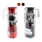 Kit Conjunto de Talheres Inox 24 Peças + Jarra 1L Vidro c/ Utensílios Garfos Facas Colheres p/ Cozinha Geladeira Almoço Suco Água