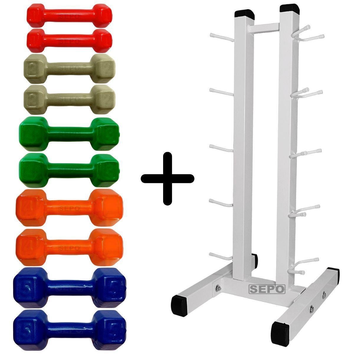 Kit Halteres Emborrachados Pares de 1Kg 3Kg e 5Kg com Suporte de Chão Preto