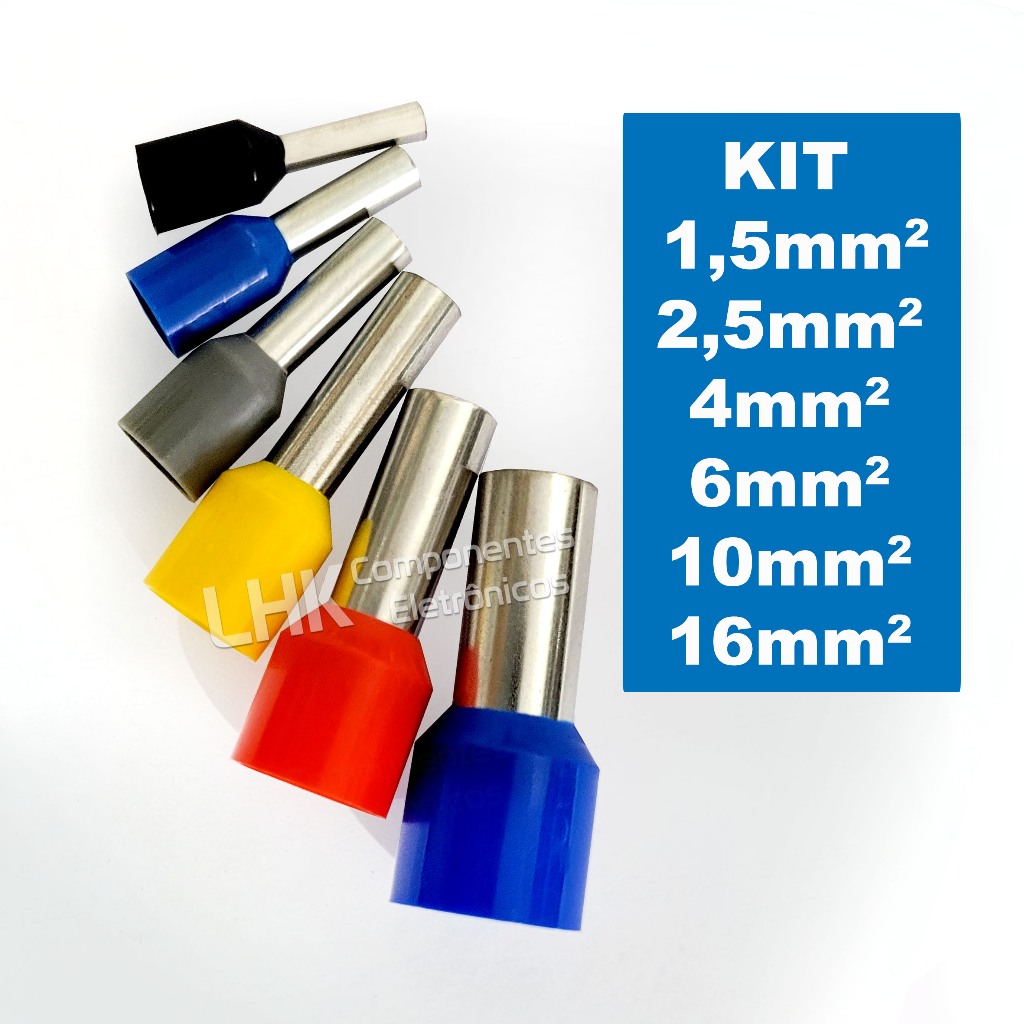 Kit Terminal Tubular Ilhós 1,5mm 2,5mm 4mm 6mm 10mm 16mm em cores padrão