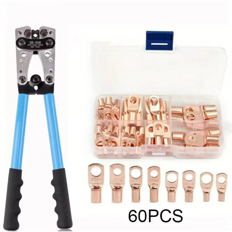 Kit Terminal Olhal Compressão 6mm 10mm 16mm 25mm (60 Peças) Com Estojo Organizador