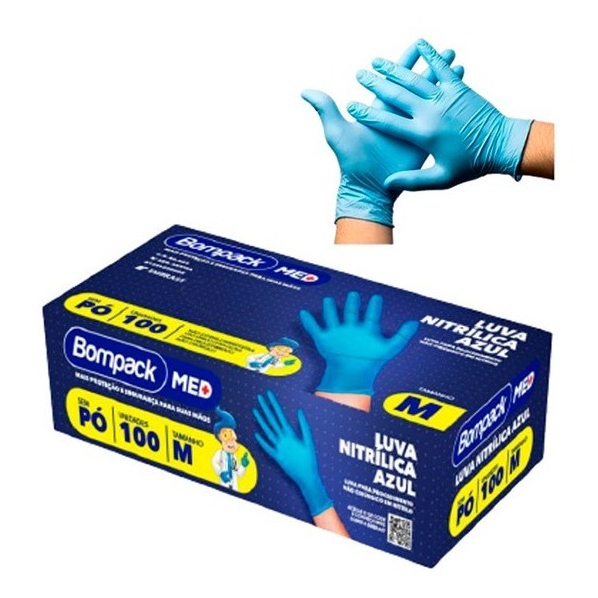 Kit C/300 Unid Luvas Nitrílica Sem Pó Azul