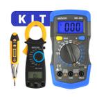 Kit Multímetro Digital Profissional + Caneta Detectora + Alicate Amperímetro LCD Bipe e Iluminação - KIT COMPLETO