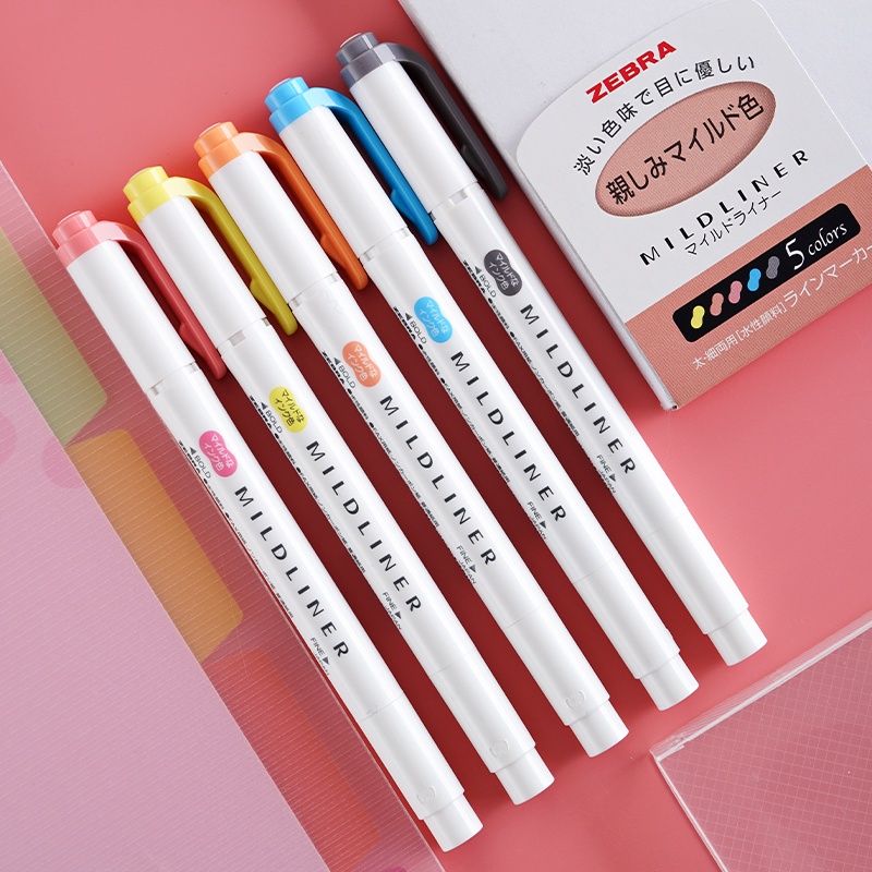 Zebra MILDLINER Caneta Marcadora Dupla Face De Ponta Conjunto De 5 Cores , Papelaria De Diário Japonês